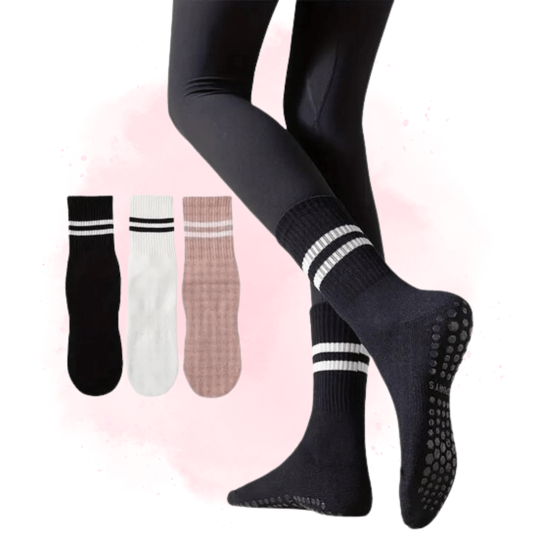 Kies jouw favoriete kleur en bestel vandaag nog deze set van 3 paar pilates sokken voor optimale grip, stabiliteit en comfort tijdens elke sessie.